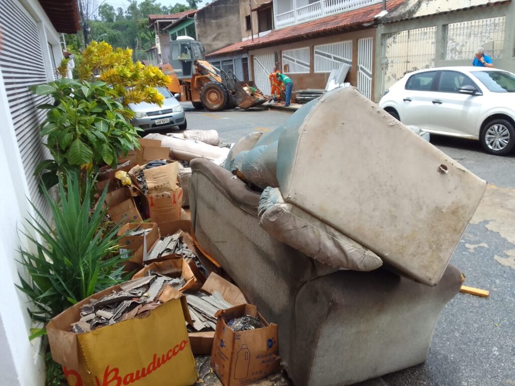 coleta. Restos de demolição, pneus, móveis e outros materiais são